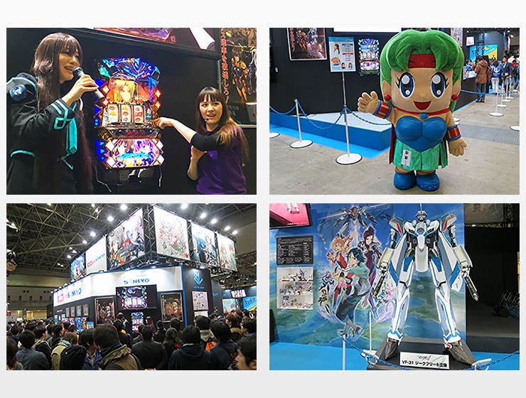当社はグループ会社である株式会社サテライトとともにブースを設け、アニメとタイアップした最新のパチンコ・パチスロ機や、サテライト社が制作したアニメ作品の紹介など、アニメファンに向けた展示を行いました。