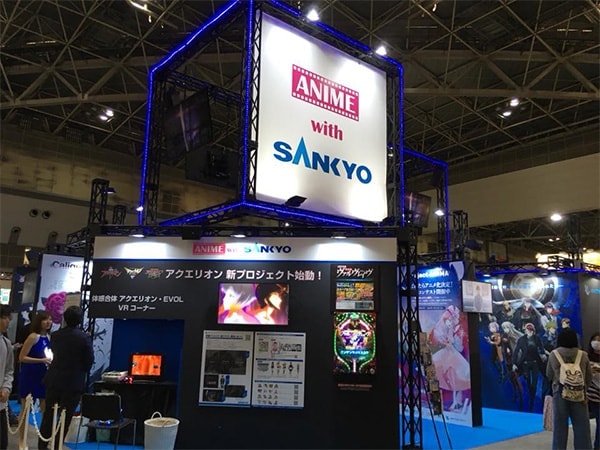 当社では、グループ会社である株式会社サテライトと共同でブースを出展し、アニメとタイアップした最新のパチンコ機を展示しました。