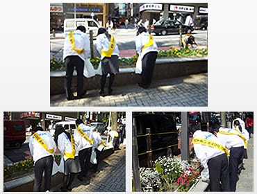 「きれいなまち渋谷をみんなでつくる条例」に基づき、区民・事業者及び区が一体となって行なっている“渋谷区クリーンキャンペーン”(渋谷区清掃活動)に2005年から参加しております。