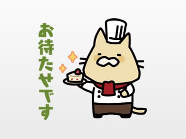 「ねこパフェ」に登場する"ねこやま店長"とゲーム内にも登場するねこ達のスタンプが登場。