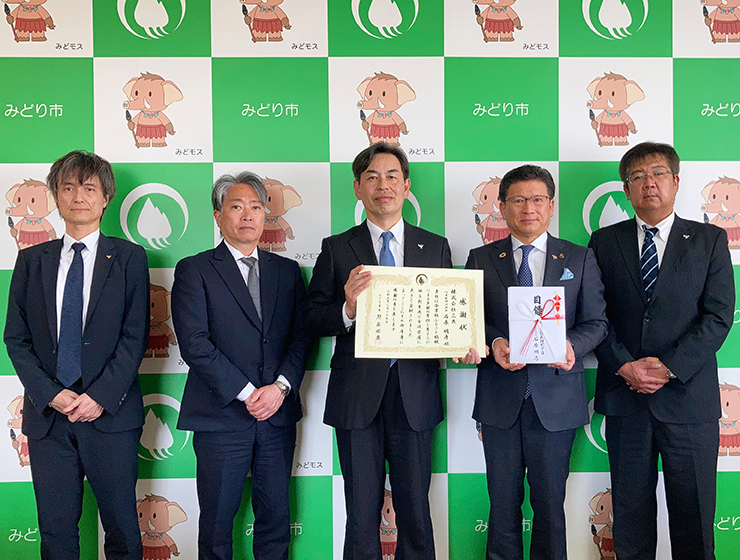 SANKYOは、群馬県みどり市への企業版ふるさと納税(地方創生応援税制)を通じて、同市が推進する「みどり市の特性を活かした地域雇用の拡大を図る事業」を支援するため、500万円を寄附しました。